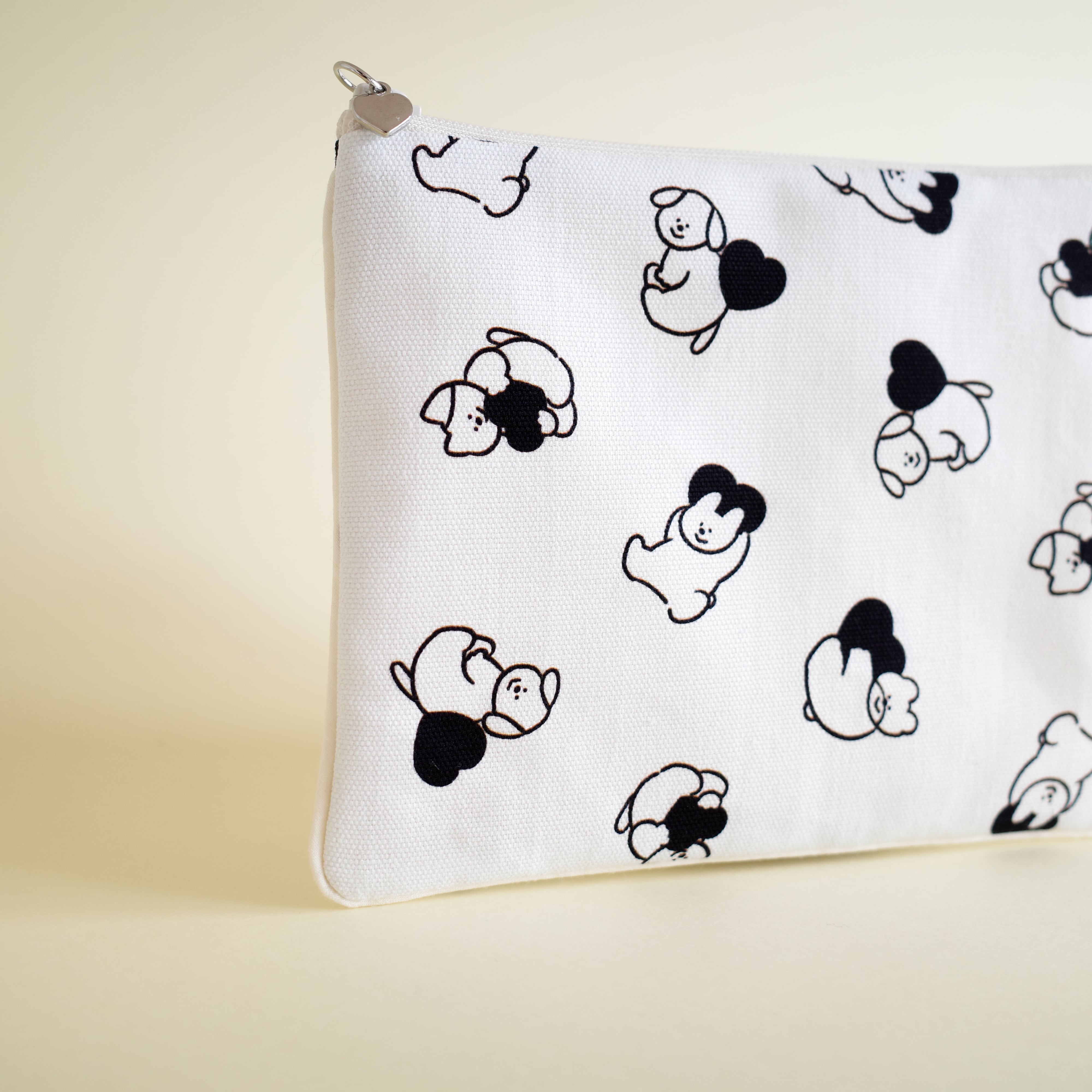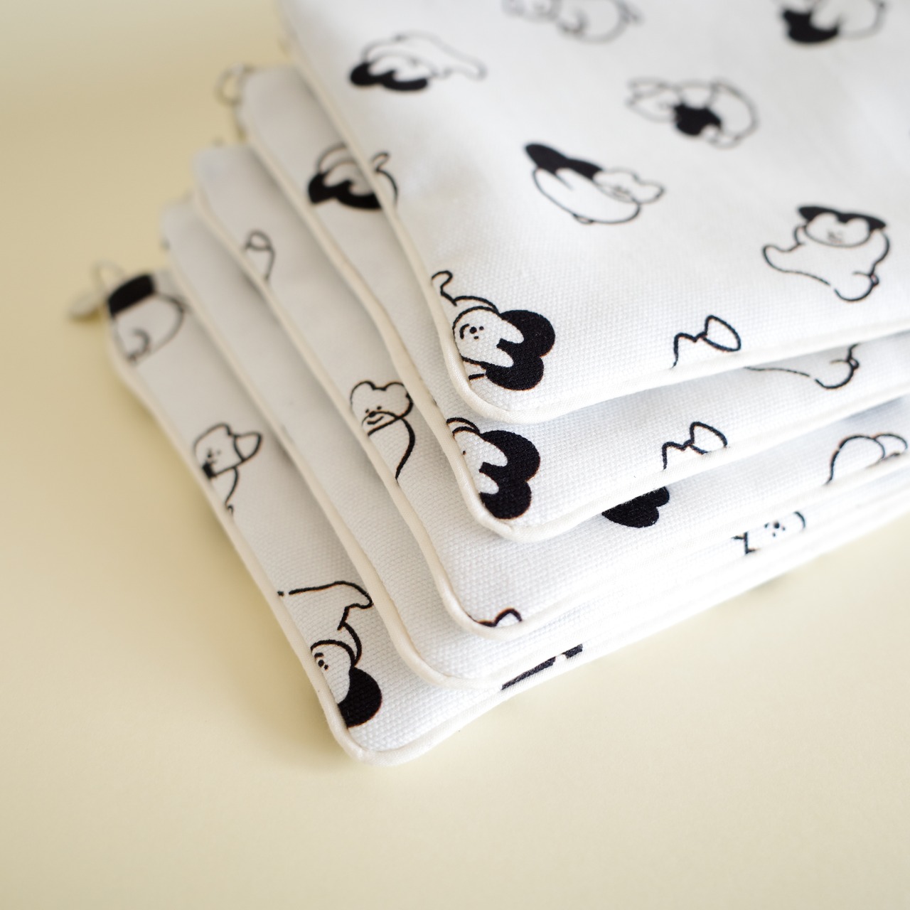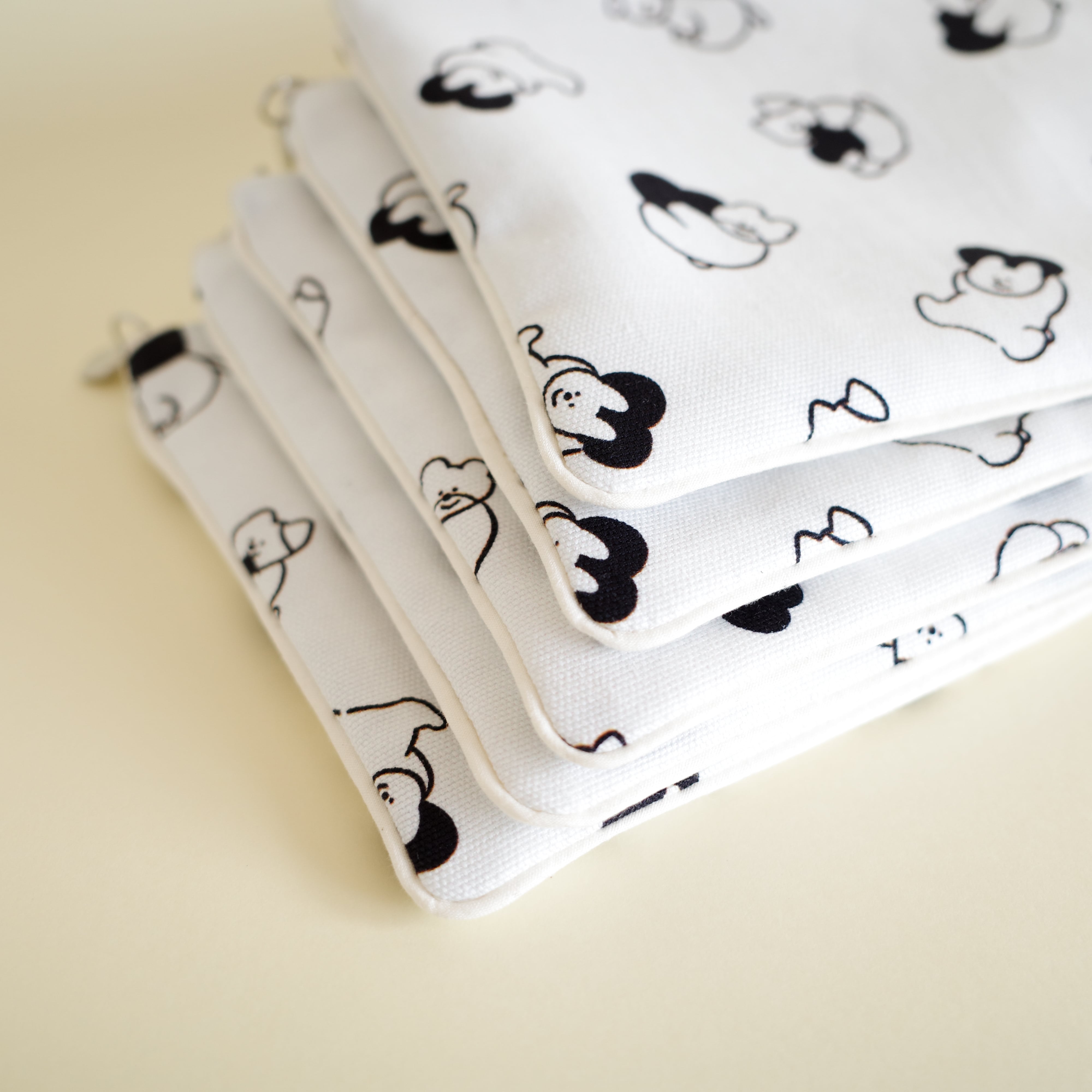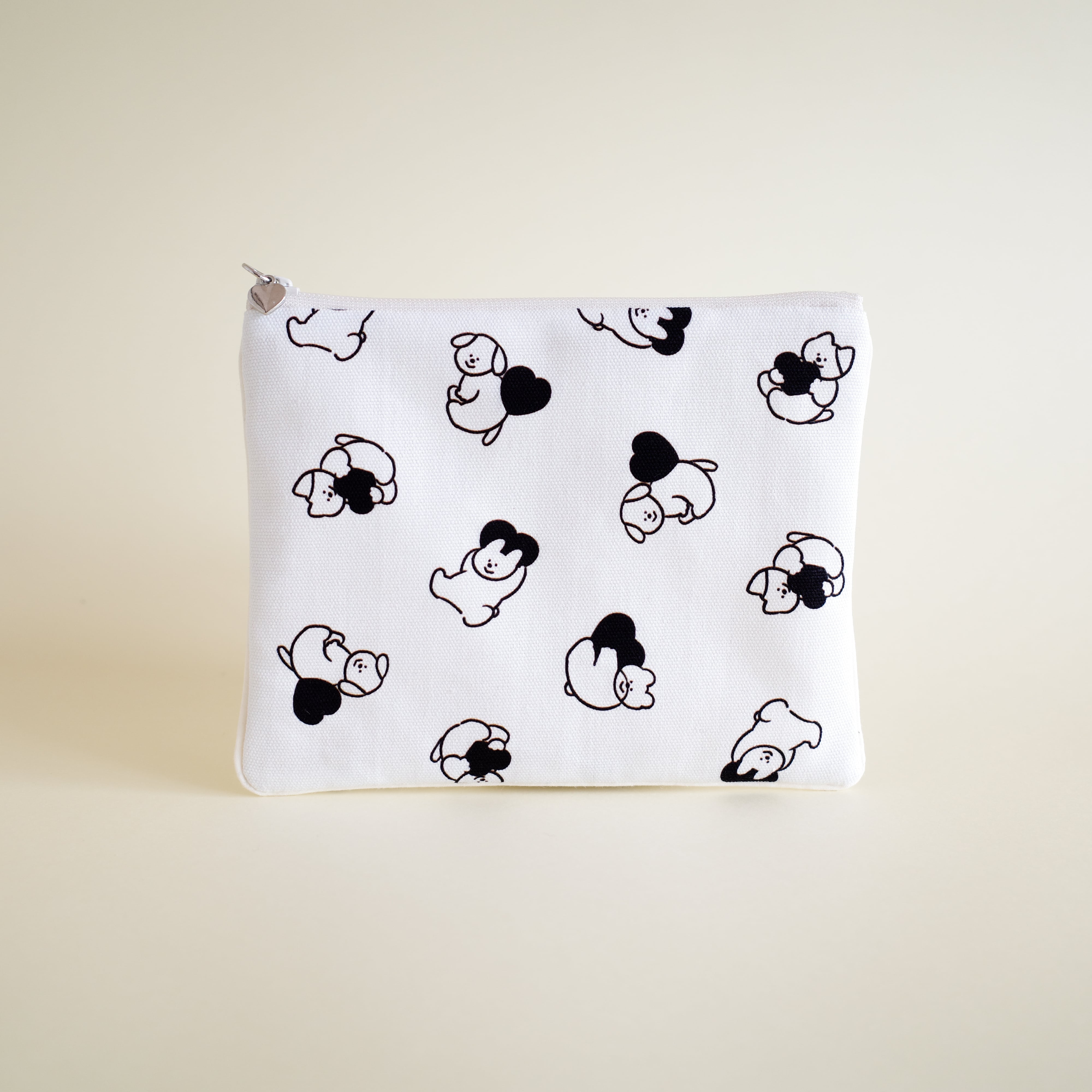 ハートフルなイラストをプリントした、オリジナル生地のポーチです。